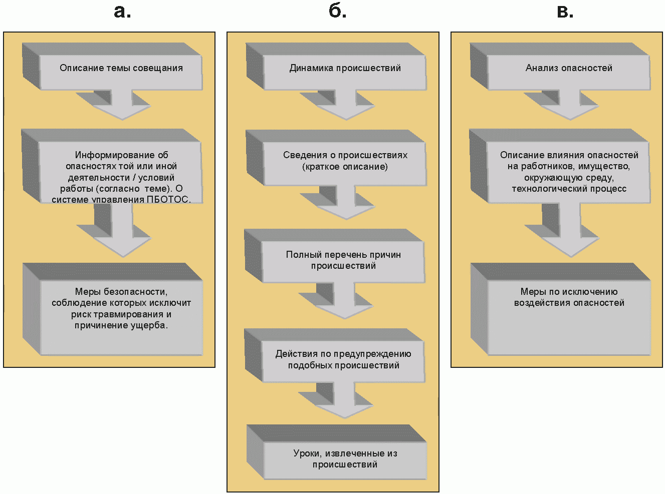 В таких случаях все работы в зоне происшествия должны быть приостановлены до устранения причин возникновения и последствий нештатной ситуации. Люди, не связанные с ликвидацией нештатной ситуации, должны быть выведены за пределы опасной зоны.