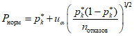 Значения базовой вероятности в зависимости