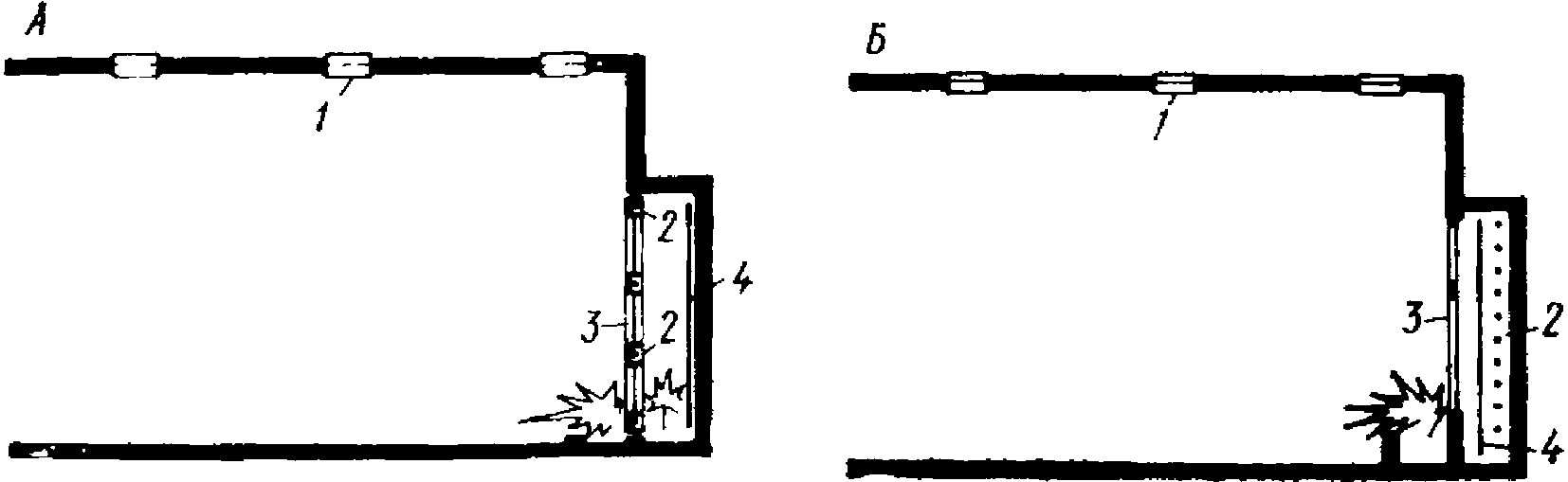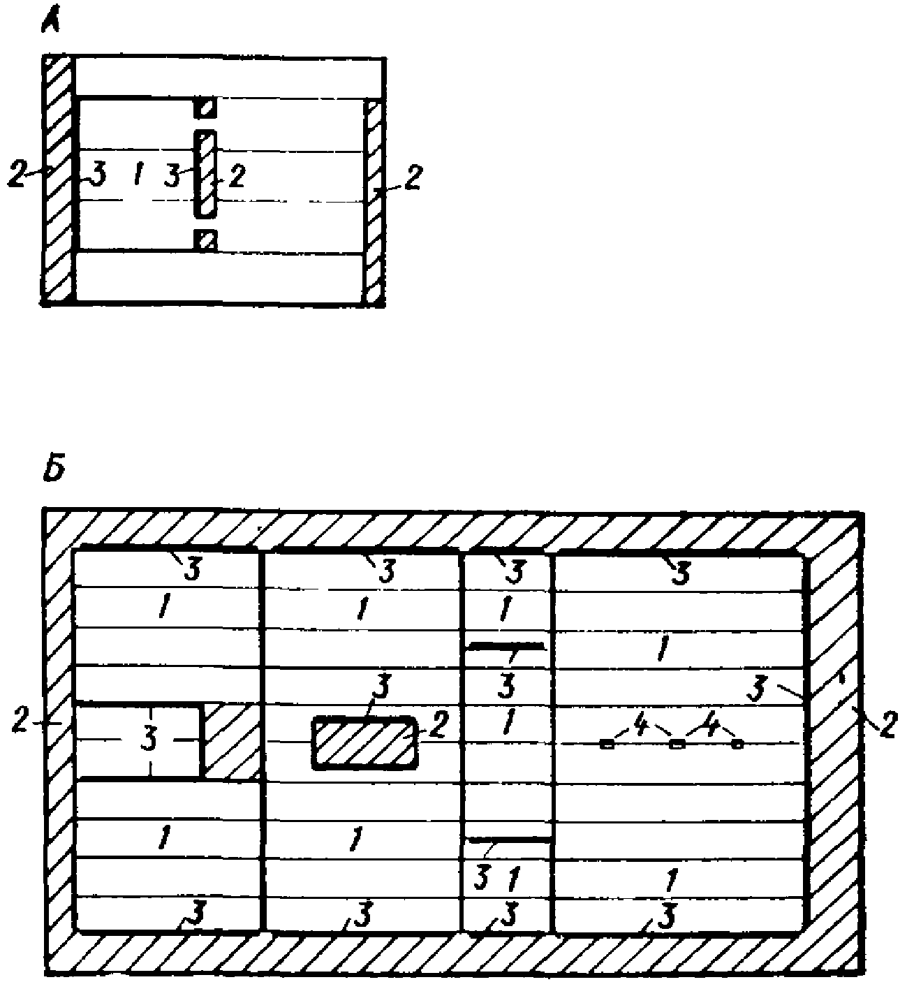 3.4. Размещение светильников удвоенными рядами с лампами ЛД и ЛБ должно осуществляться по схеме