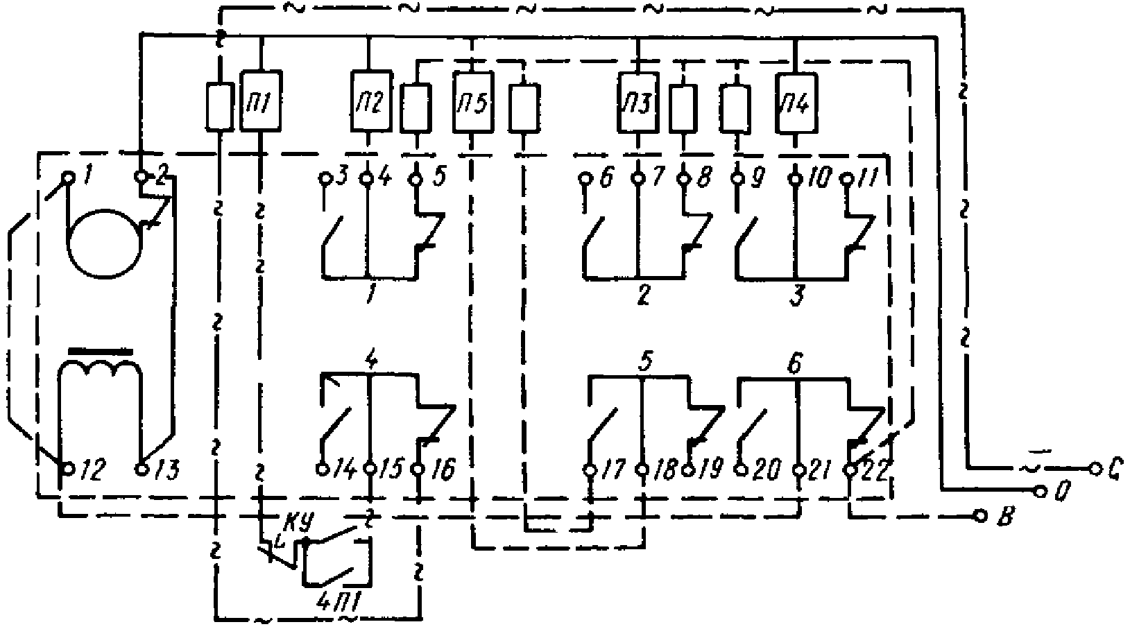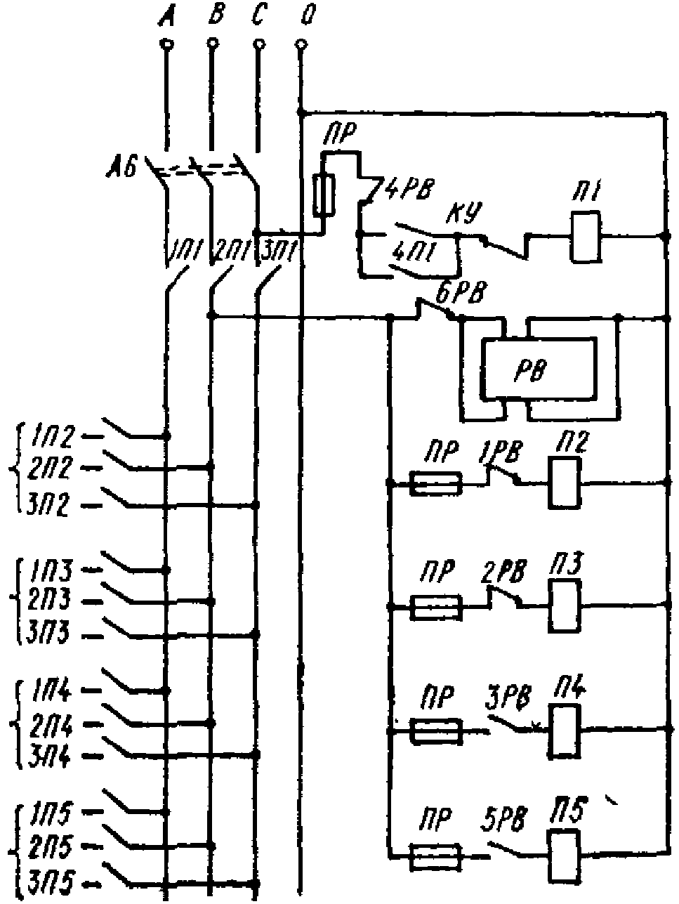 Рис. 1. Блок-схема подключения реле времени и ламп