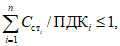 где n - количество вредных веществ одного лимитирующего признака вредности;