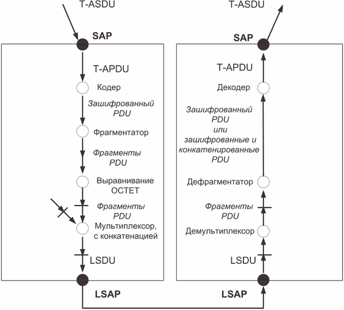 2.10 фрагментация: Функция, выполняемая ядром передачи, для позиционирования одного ASDU на множестве LSDU.