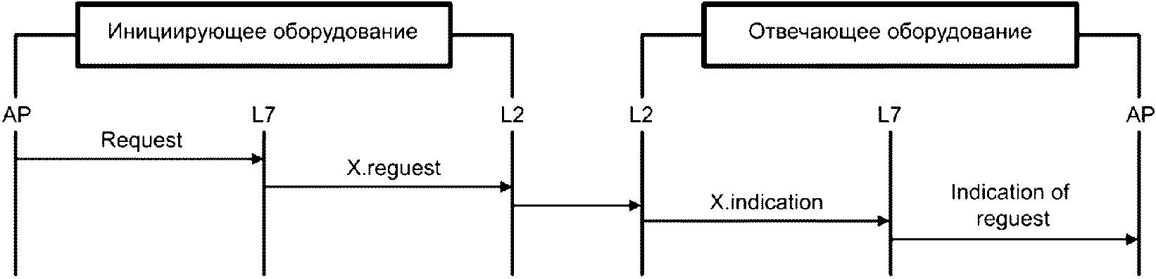 Индикация | Примитив выдается поставщиком услуг (L2) и отправляется пользователю сервиса (L7), с целью указать, что внутренние действия нижнего уровня могут быть логически связаны с запросом удаленного поставщика услуг или вызваны событиями нижнего уровня, то есть уведомления от поставщика услуг (L2) пользователю локального сервиса (L7), что запрос был принят через однорангового пользователя удаленного сервиса (L7) и/или отправлен принятому блоку данных и/или статуса |
