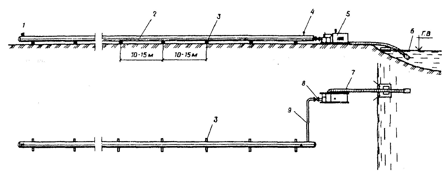 В последнем случае воздух должен подаваться от двух спаренных водолазных помп с ручным приводом, с обслуживанием каждой помпы четырьмя речными рабочими 2 разр. (качальщиками).