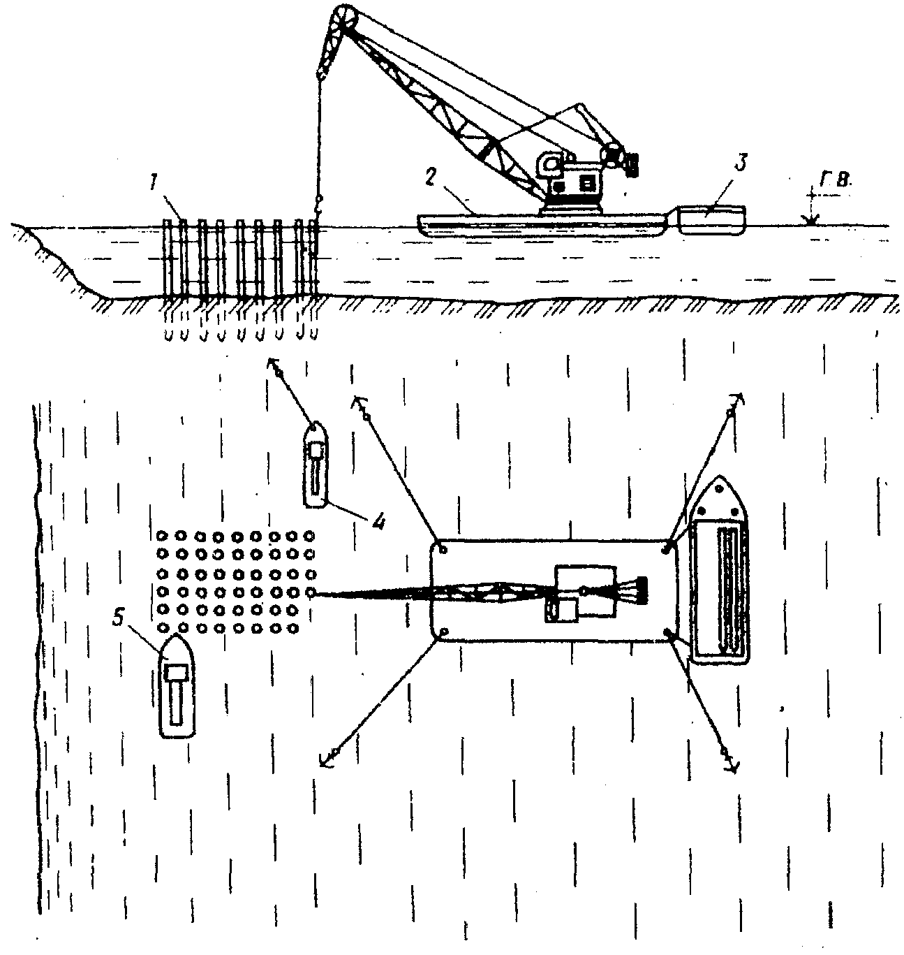 Нормами предусмотрено извлечение плавучим краном стальных и железобетонных свай с глубиной забивки до 15 м, расположенных друг от друга на расстоянии до 5 м.