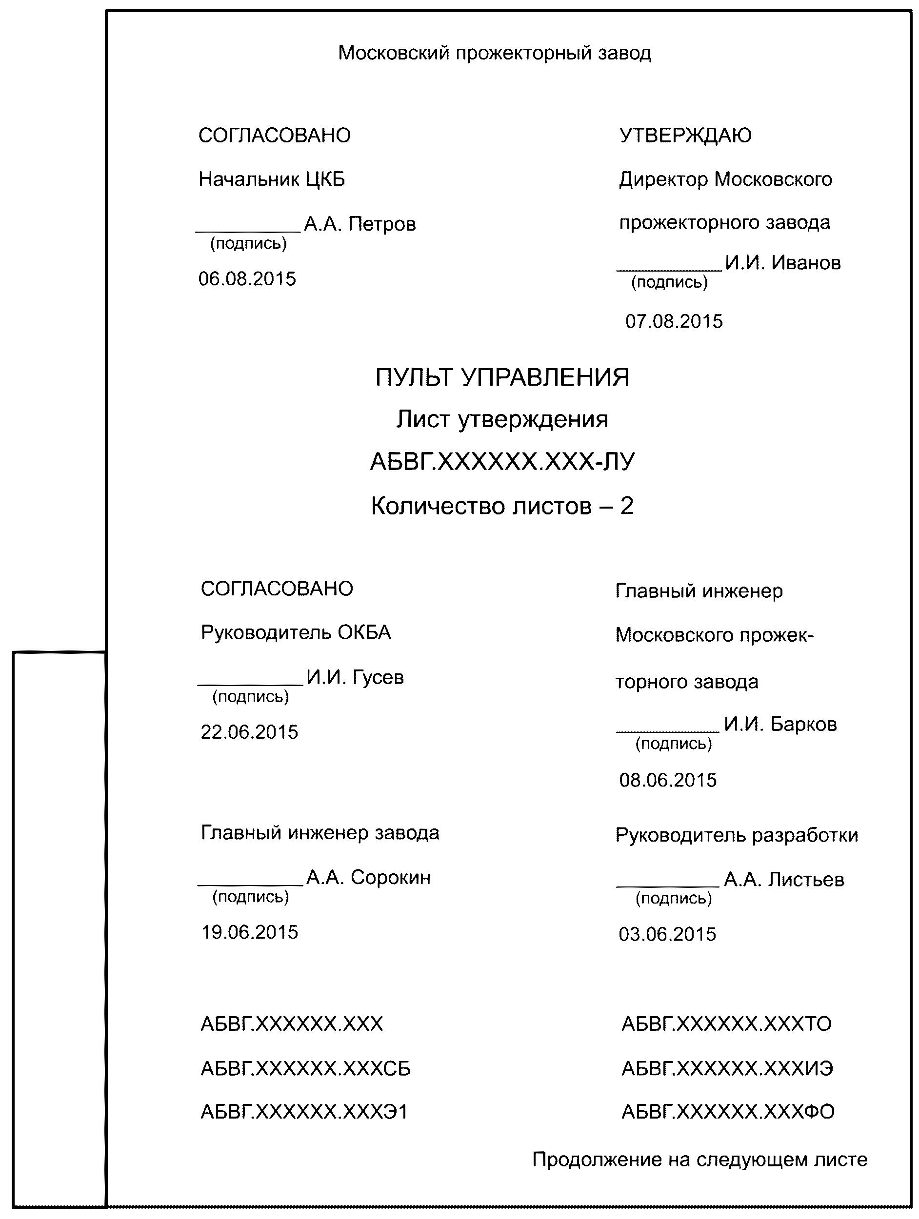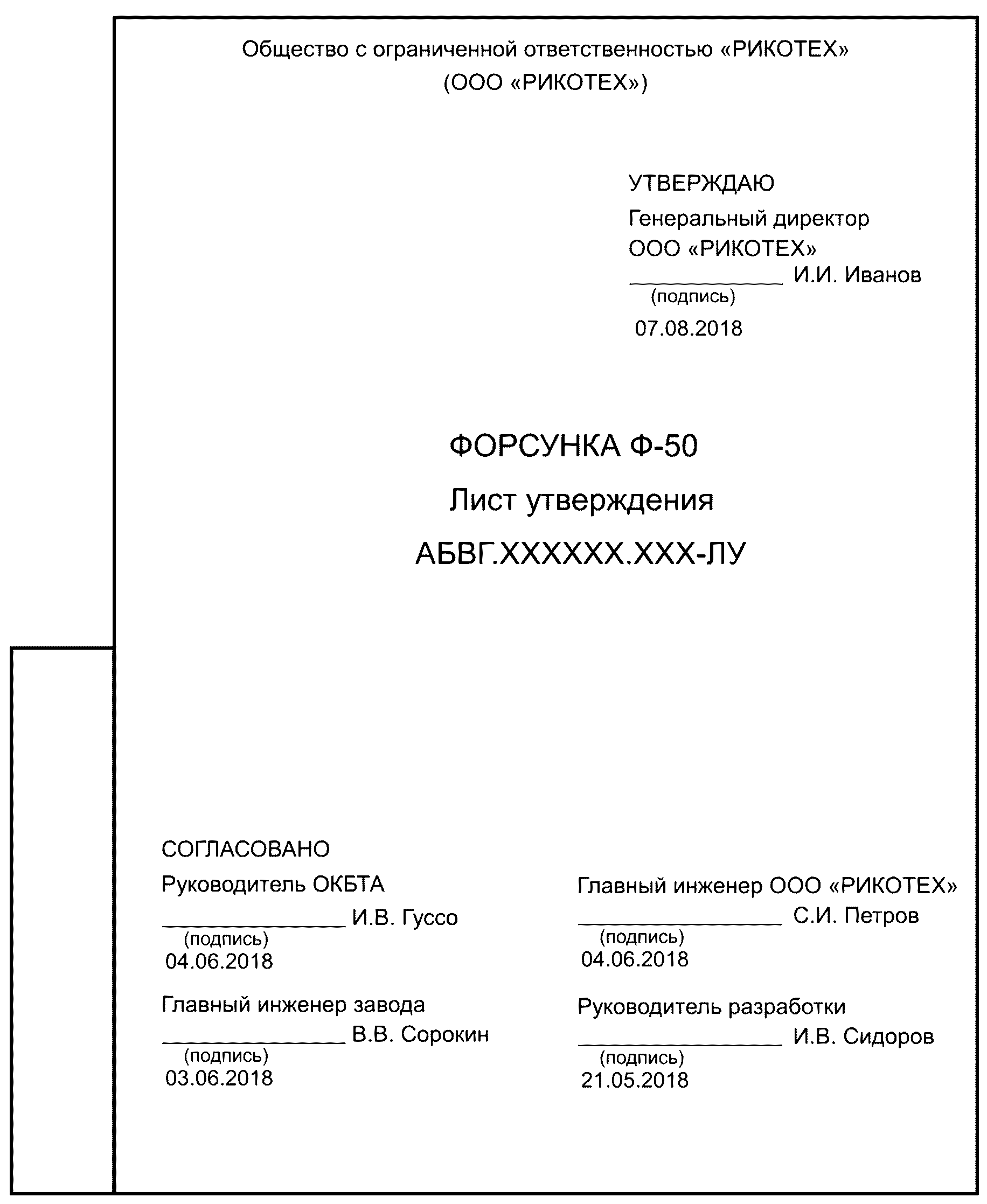 ПРИМЕР ЗАПОЛНЕНИЯ ЛИСТА УТВЕРЖДЕНИЯ