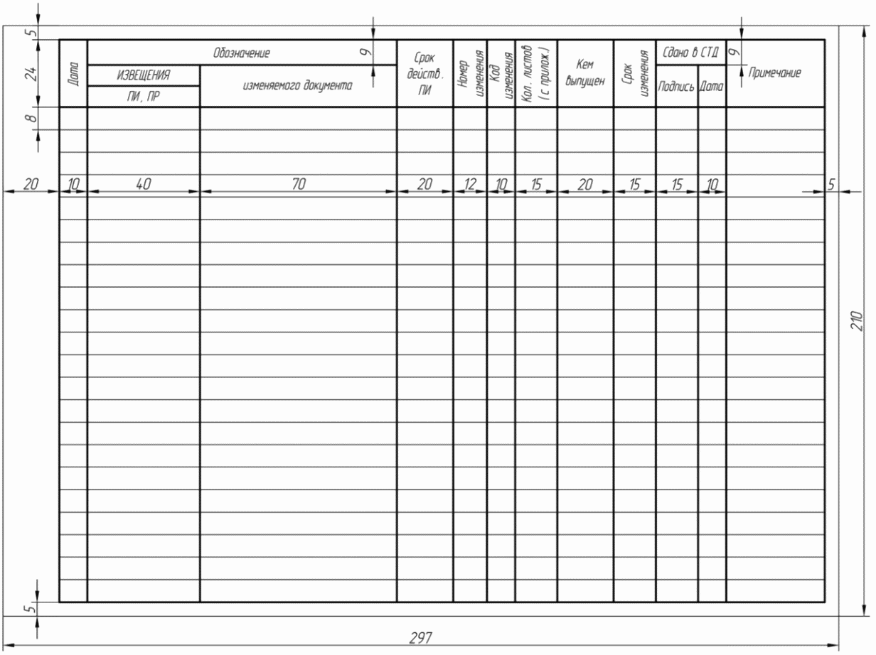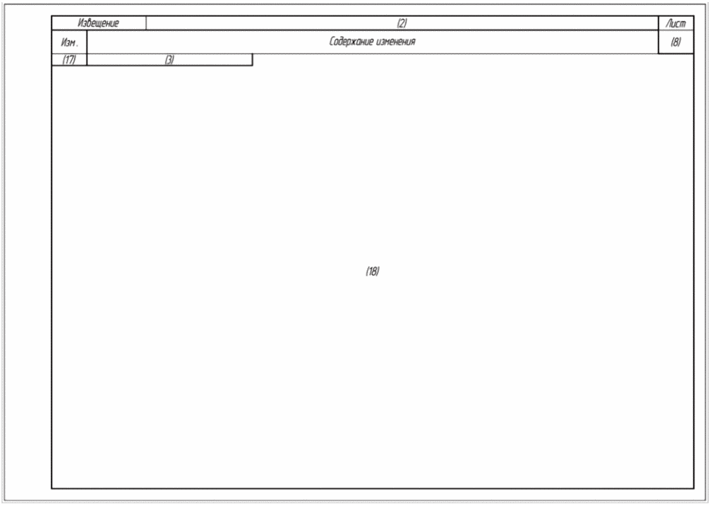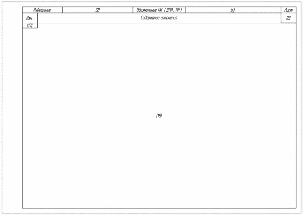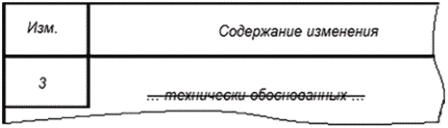 | Указывают обозначение ИИ и обозначение изменяемого документа. При нехватке места для перечисления всех изменяемых по данному ИИ документов допускается их все не перечислять, а взамен приводить запись, например: "Согласно И" или "В соответствии с ИИ" |