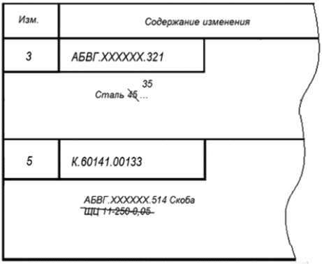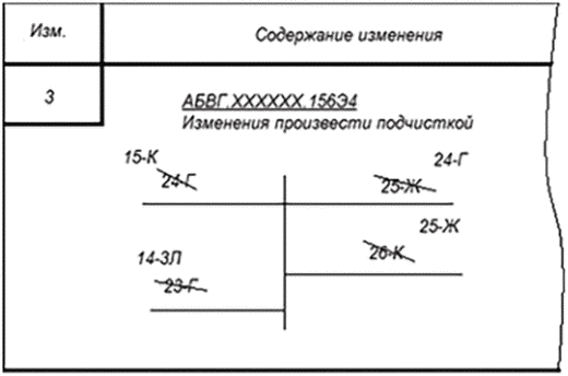 - конструкторских документов в бумажной форме - в таблице изменений основной надписи (по