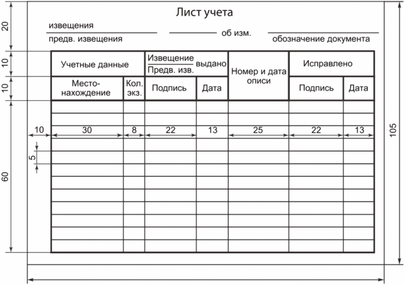 Примечание - Форма листа учета и размеры граф могут быть уточнены организацией, ведущей учет изменений.