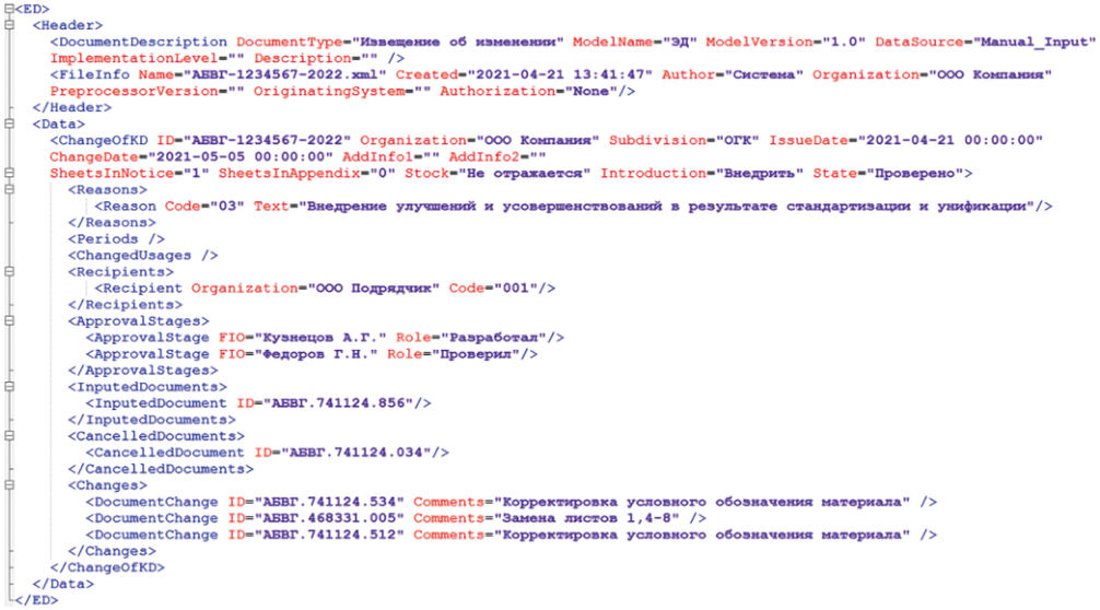 Л.2 Пример структуры извещения в виде структурированного файла:
