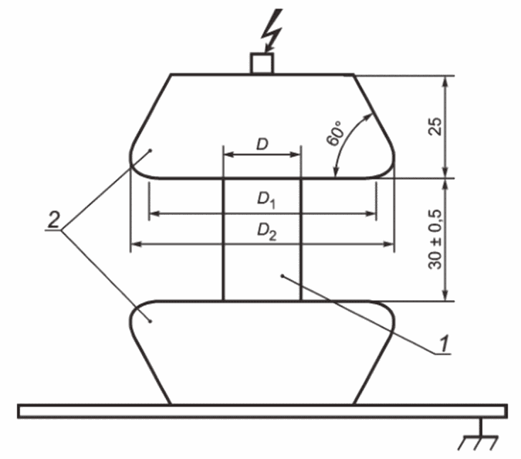 Эскиз электродов для проведения высоковольтных испытаний после кипячения приведен на