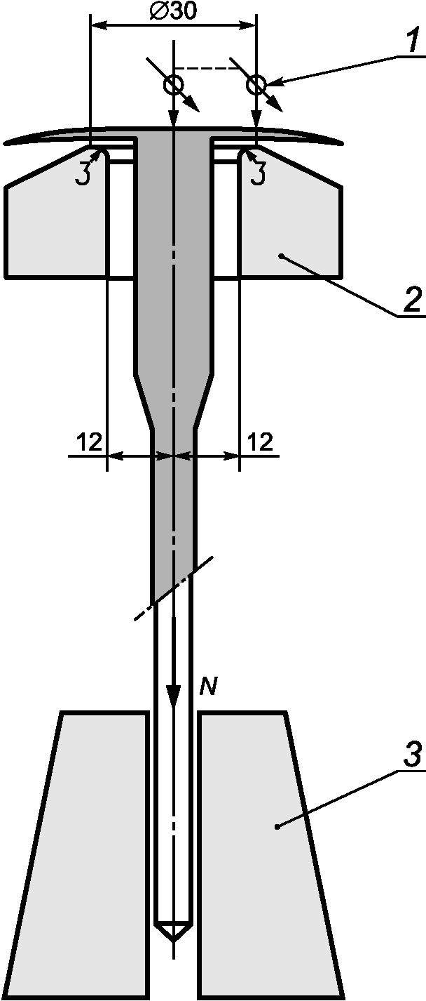 Б.2.2 При испытаниях разрезная муфта работает в сборе с цилиндром, с которым сопрягается по конической поверхности. Устройство в сборе формирует сквозное отверстие диаметром 8+0,2 мм.