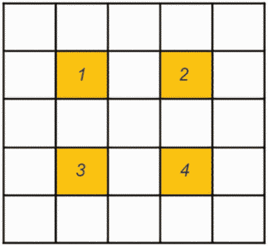 7.2.4 Для проведения испытания декоративно-защитный слой прорезают по контуру плиток до границы клеевого плиточного слоя и армированного базового штукатурного слоя. Для испытания готовят не менее двух образцов, а отрыву подвергают не более четырех плиток образца, выбирая их, как показано на рисунке 3. Отрыв при испытании должен проходить по телу клеевого плиточного слоя или армированного базового штукатурного слоя [аналогично типам отрыва АТС-2 и АТС-3, указанным в ГОСТ Р 55412-2018