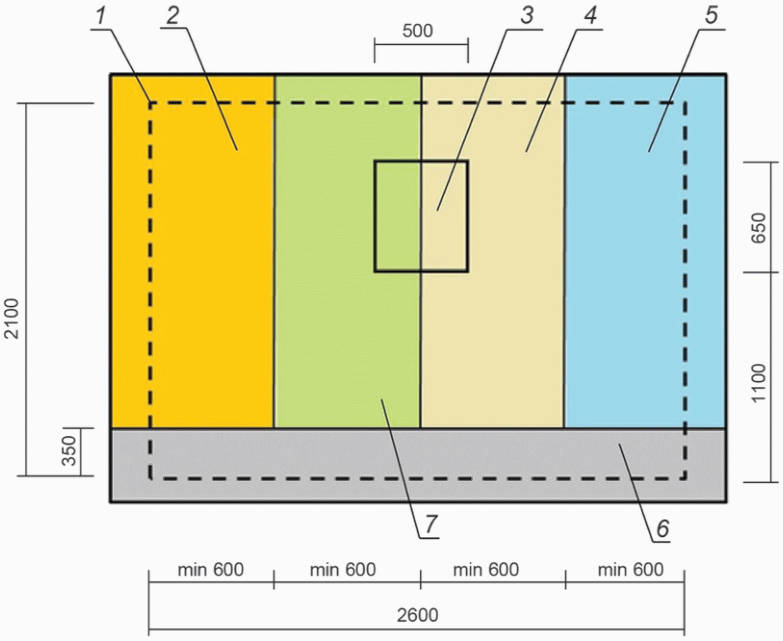 6.7, при этом число участков с различными видами штучных элементов может быть увеличено до четырех, площадь каждого участка должна быть не менее 1 м