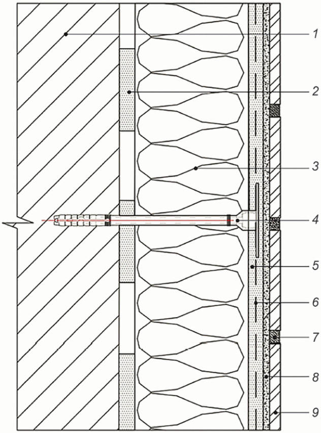 3 - теплоизоляционный слой; 4 - тарельчатый анкер;