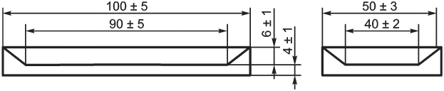 Г.3 Для оценки равномерности распределения вяжущего по ширине применяют измерительный шаблон. Измерительный шаблон состоит из четырех секций длиной 1 м. Секции предназначены для установки в них алюминиевых ванночек для вяжущего. Ванночка представлена на рисунке Г.1.