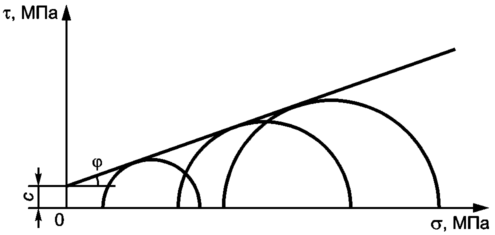 Рисунок Г.2 - Диаграмма прочности Кулона-Мора