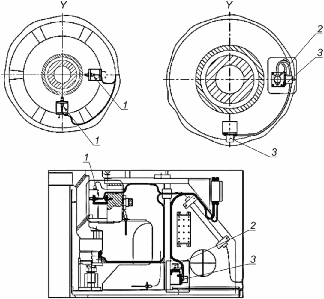7.4 Если иное не указано в руководствах по эксплуатации гидротурбины и гидрогенератора, контроль абсолютных виброперемещений опорных частей выполняют в соответствии с