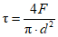 10.1 Рассчитывают напряжение при сдвиге для каждого образца
