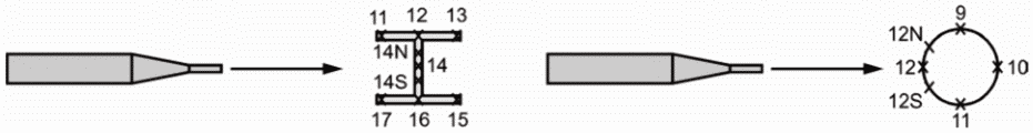 стороне держателя образца, позиции 19 - 27 соответствуют
