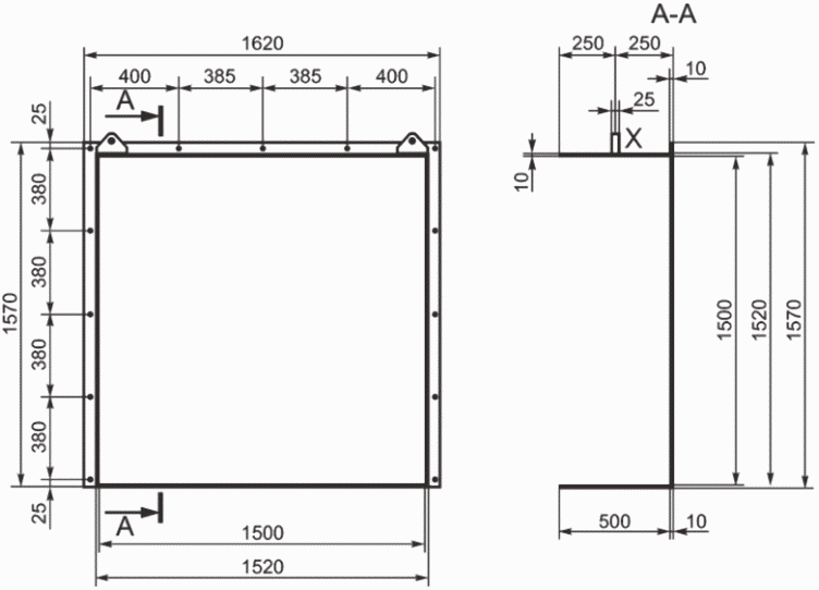 Рисунок Б.1 - Общий вид резервуара с квадратным основанием,
