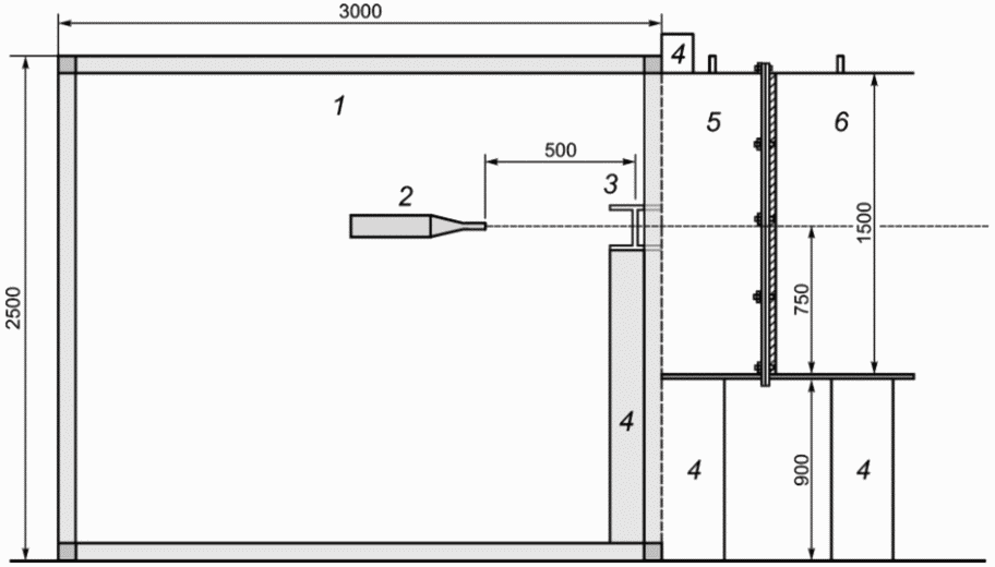 1 - климатическая камера; 2 - сопло; 3 - держатель образца;