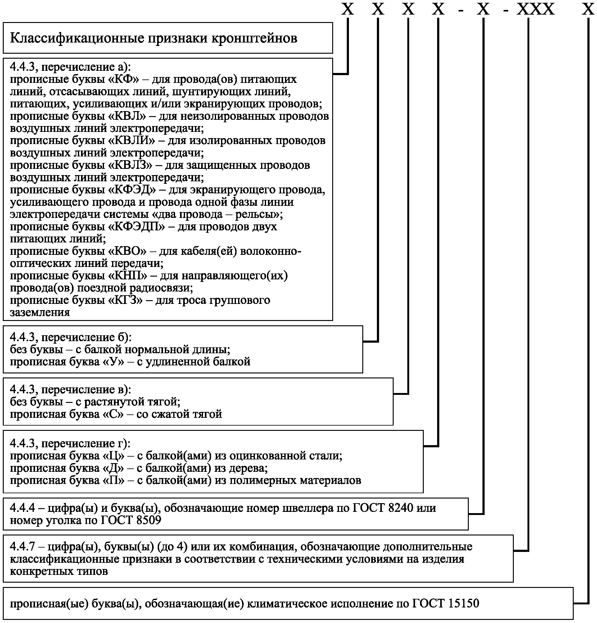 б) расшифровку цифр, букв или их комбинаций, обозначающих дополнительные классификационные признаки изделия.