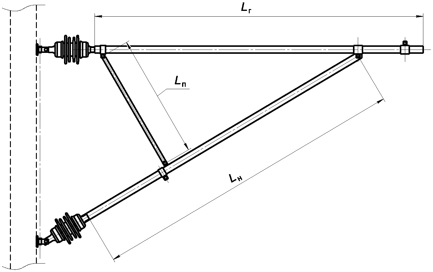 Номер типоразмера | Обозначение | Основные размеры, мм | Масса, кг | Горизонтальная нагрузка на основной стержень <2> P, Н, не менее | Горизонтальная нагрузка на дополнительный стержень <2> Pд, Н, не менее | |