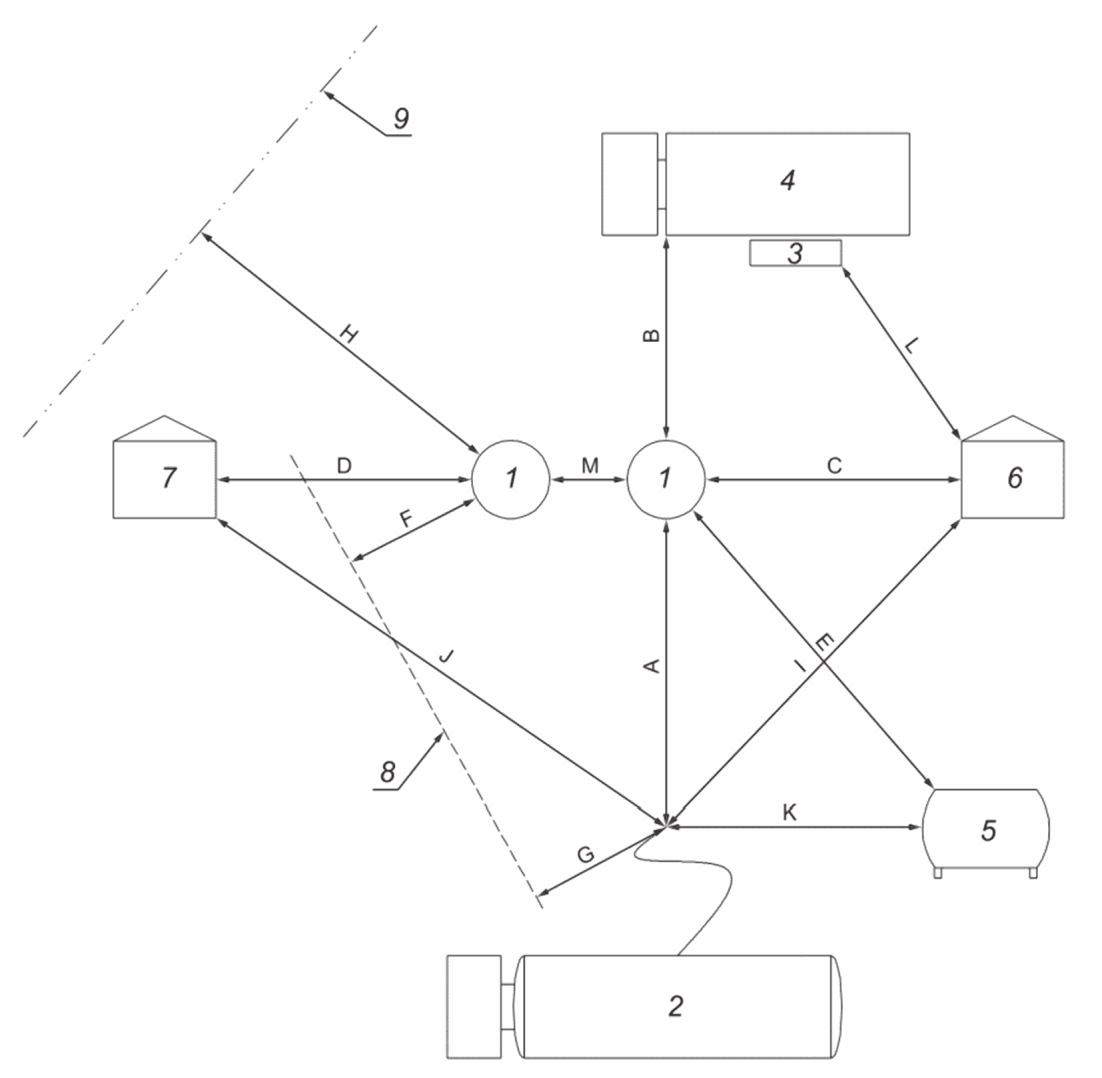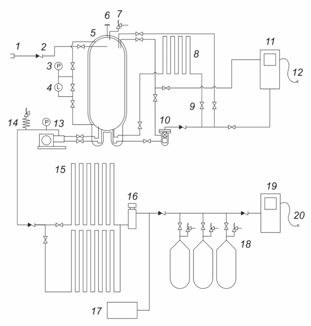рисунке K.1 показан пример технологической схемы узла одоризации высокого давления.