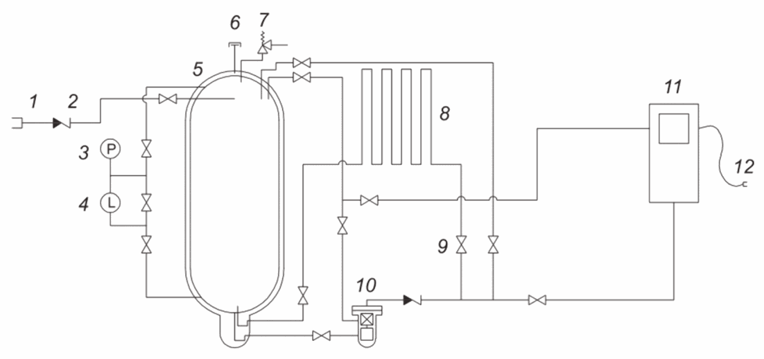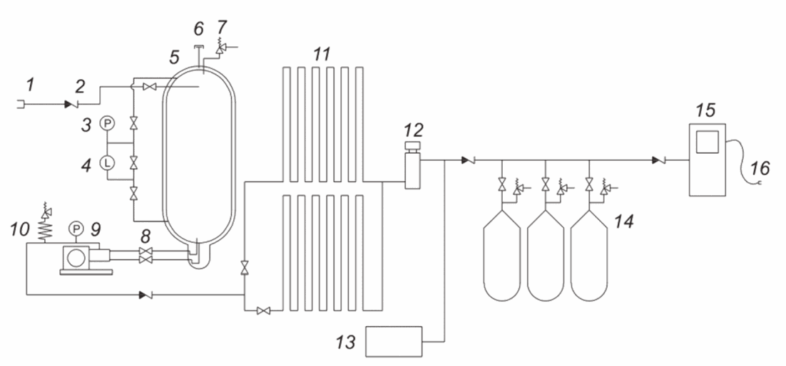1 - приборный воздух; 2 - дозирующий насос; 3 - буферный
