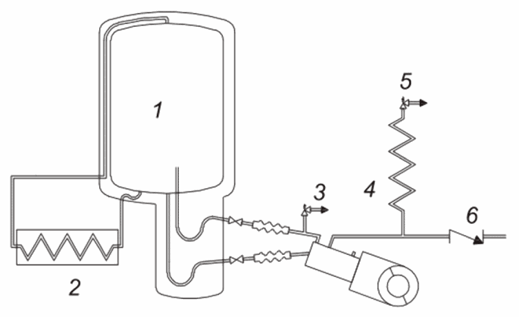 резервуар емкостью около 6 л; 4 - линия питания узла