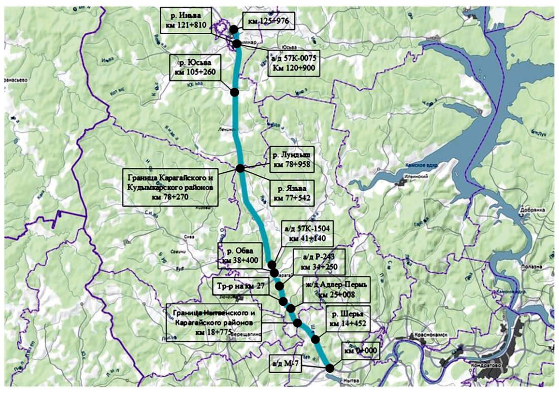 Координаты элементов автомобильной дороги и дорожных сооружений |