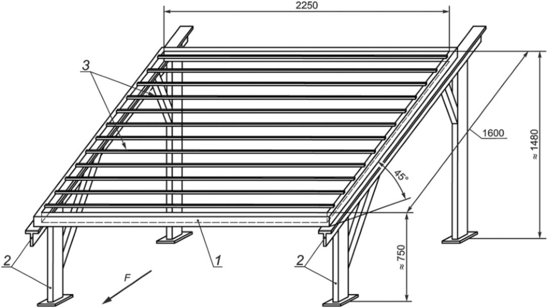 Пример стойки для экспонирования образцов труб с типичными размерами показан на