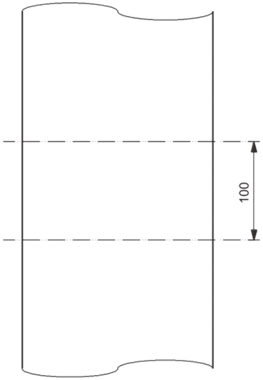 Отбирают две репрезентативные пробы из рулона по одной с каждого конца или от начала двух рулонов. От каждой пробы отрезают образец длиной не менее 100 мм по всей ширине пробы (см. рисунок 1).