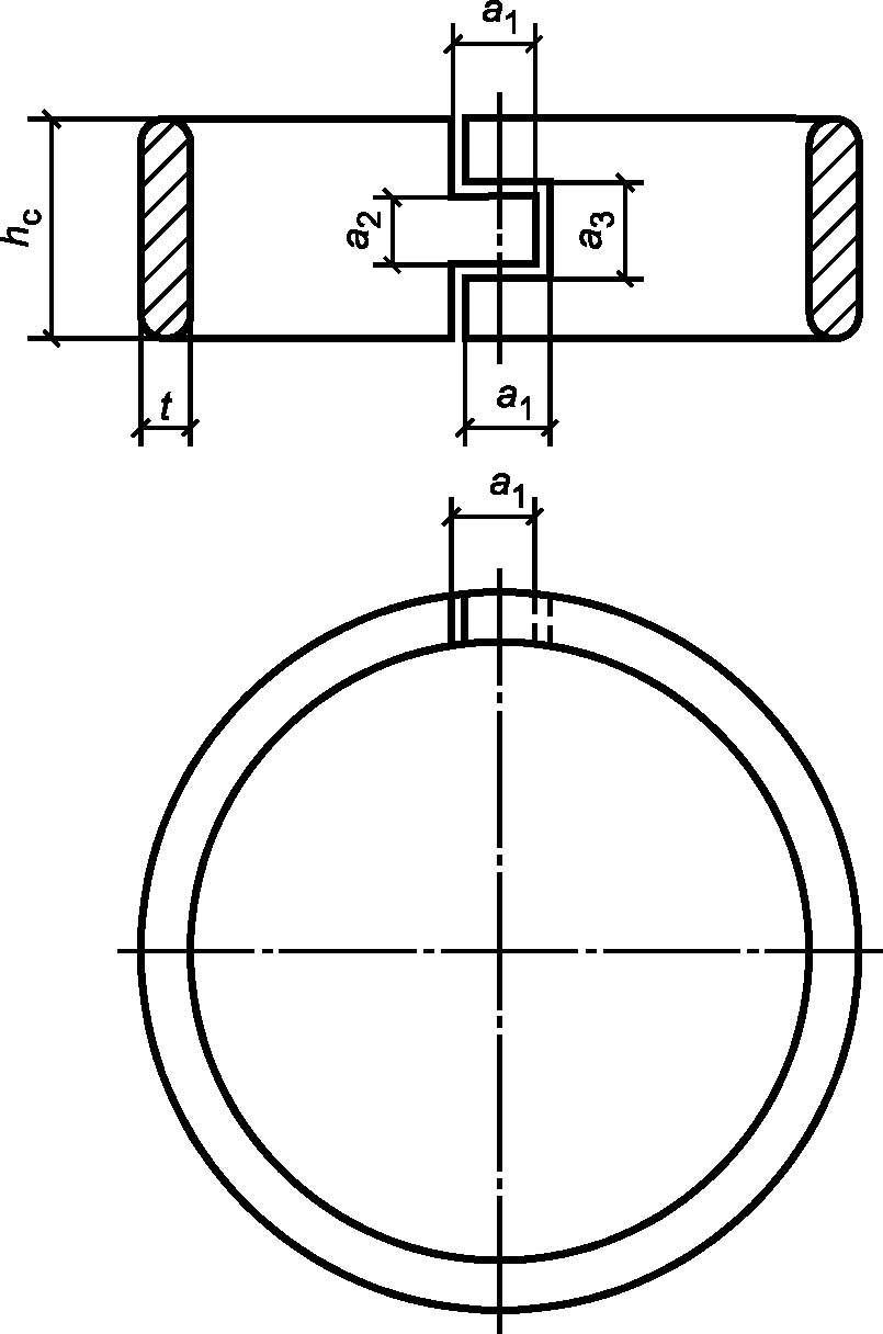 Тип | Диаметр dс, мм | Высота hс, мм | Толщина t1, мм | Максимальная толщина t2, мм | Ширина разреза a, мм |