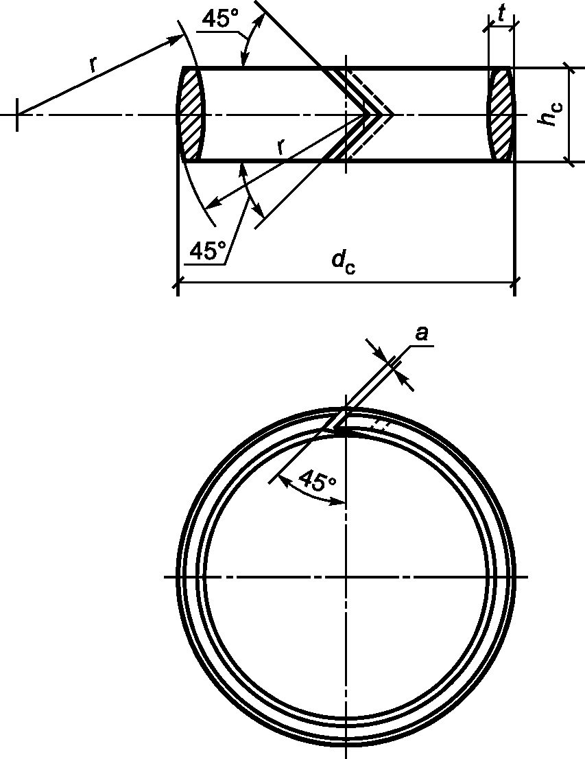Диаметр dс, мм | Высота hс, мм | Толщина t, мм | Радиус r, мм | Ширина разреза a, мм |