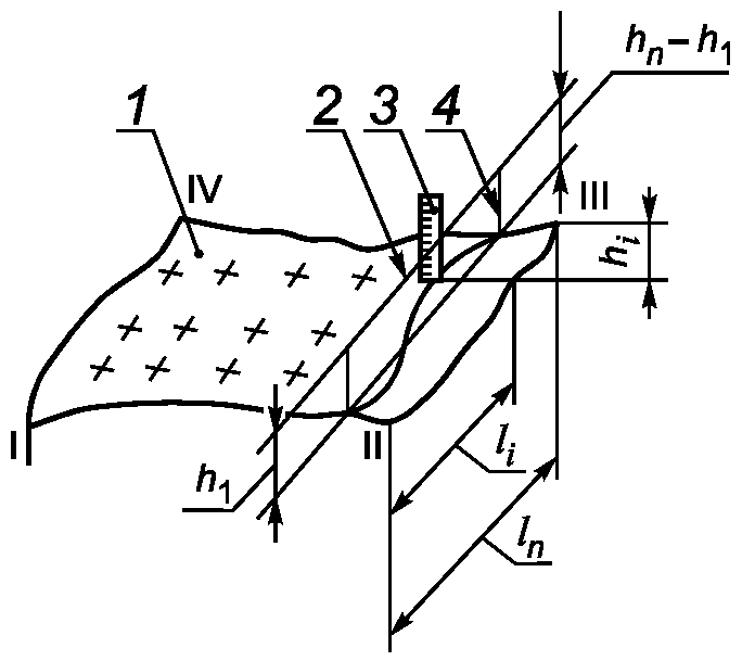 h1 - измеренное расстояние от поверхности элемента до линии отсчета в первой точке рассматриваемого сечения;