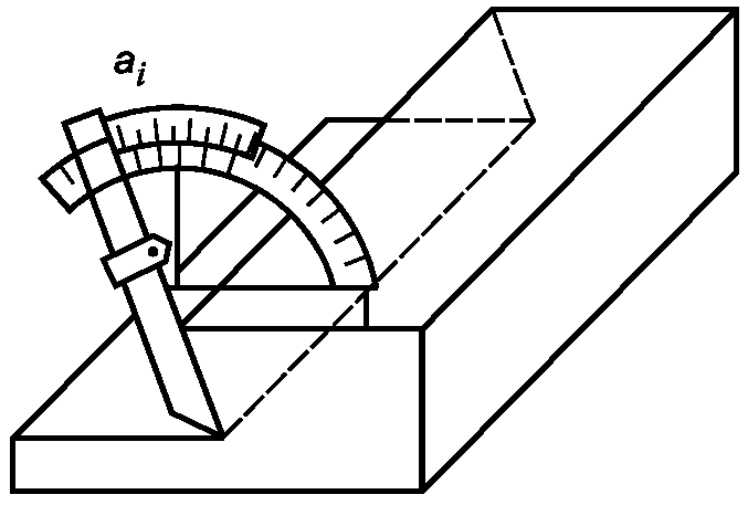 4.4 Угловые размеры проверяют угломерами, а их отклонения, выраженные линейными единицами, - линейками и щупами с применением угольников, калибров, шаблонов.