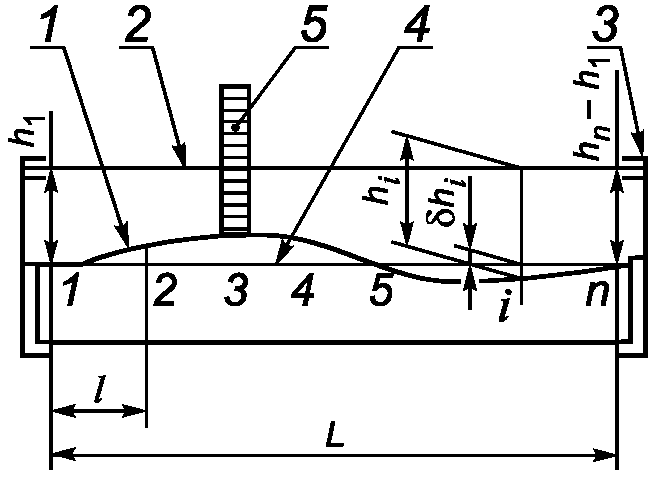 hi - измеренное расстояние от поверхности элемента до линии отсчета в i-й точке рассматриваемого сечения;