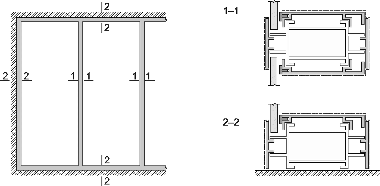А.1 Варианты конструктивных решений каркасных светопрозрачных перегородок