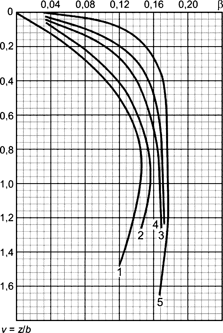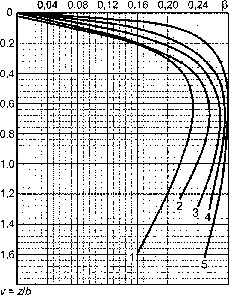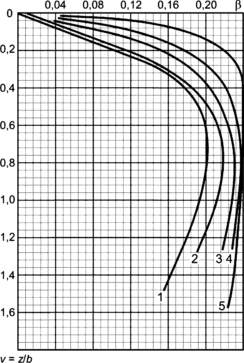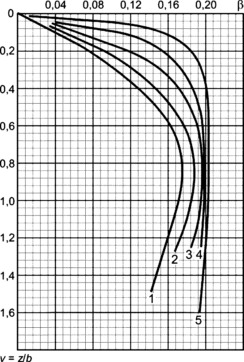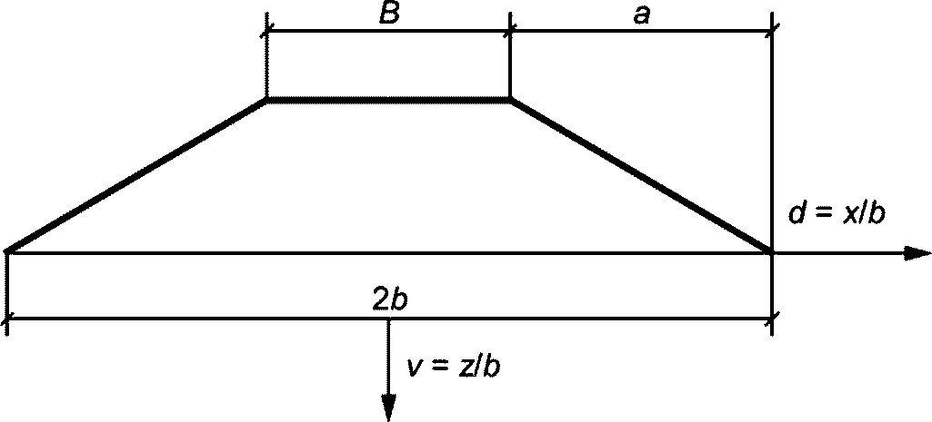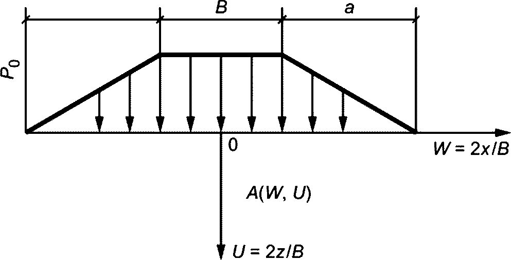 В.15) можно определить величину большего и меньшего главных нормальных напряжений, возникающих в любой точке основания от нагрузки, распределенной на поверхности по закону равнобокой трапеции.