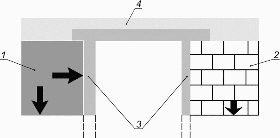 1 - ППС блоки; 2 - дорожная одежда; 3 - бетон; 4 - грунтовое
