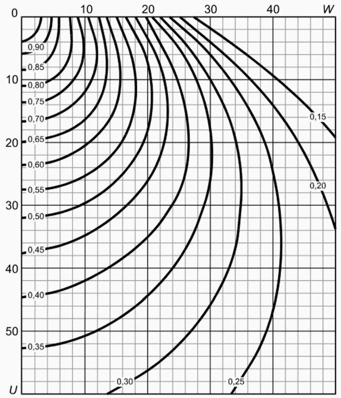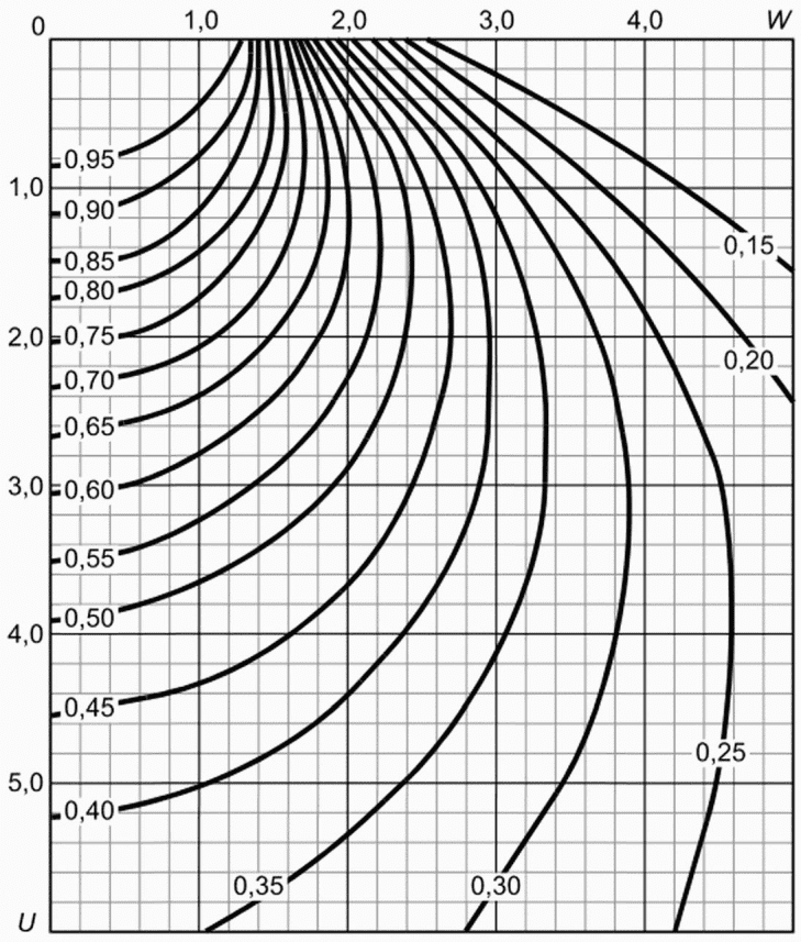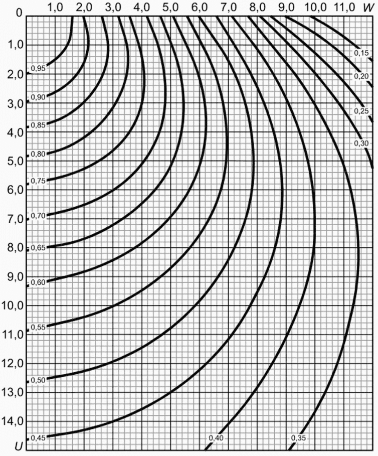 Значения a1 и a2 определяют непосредственно по изолиниям или интерполяцией.