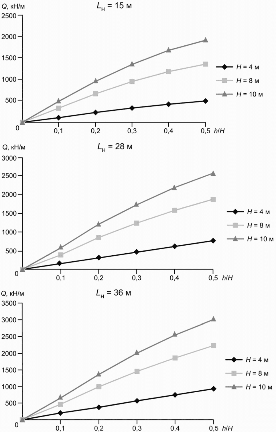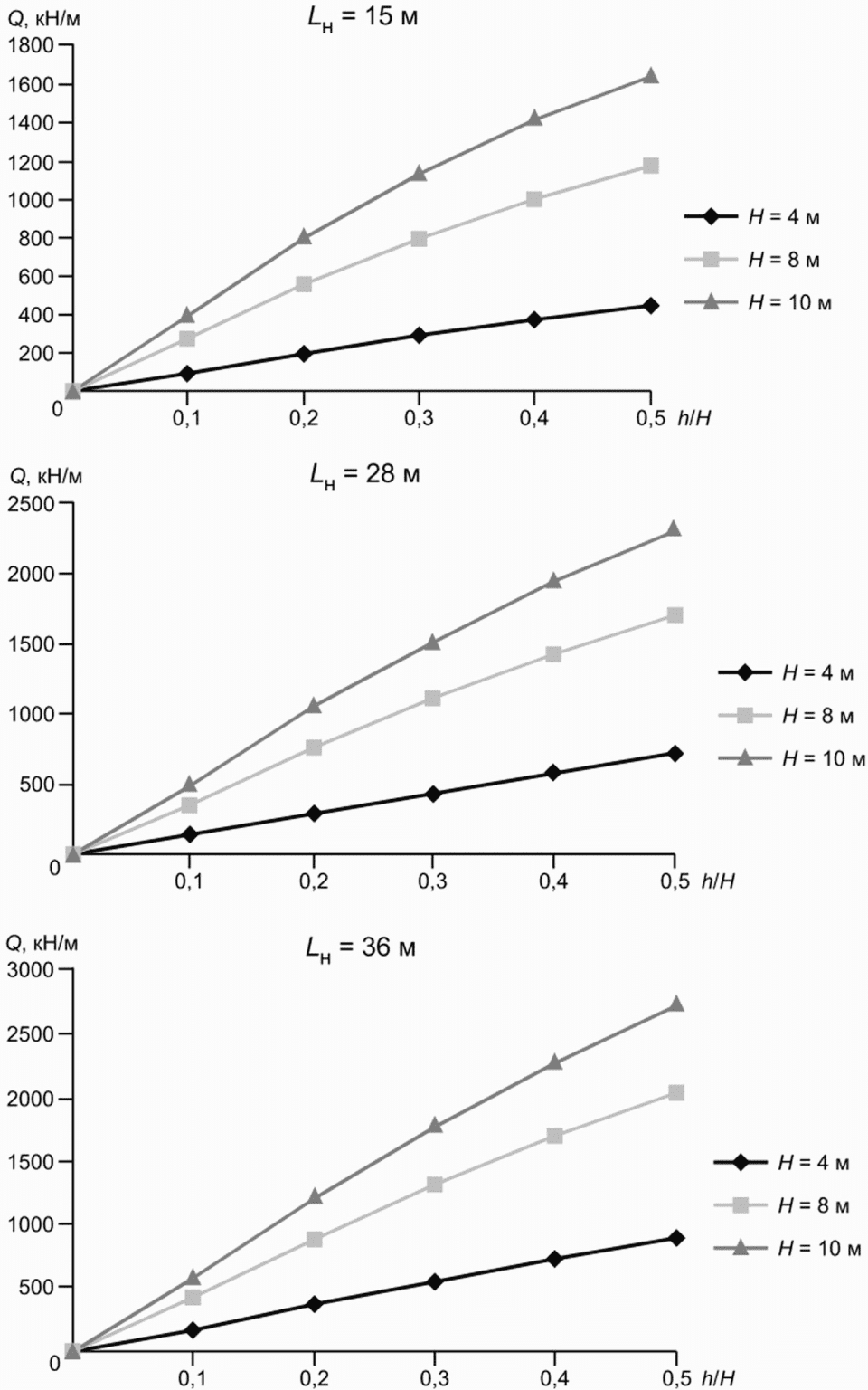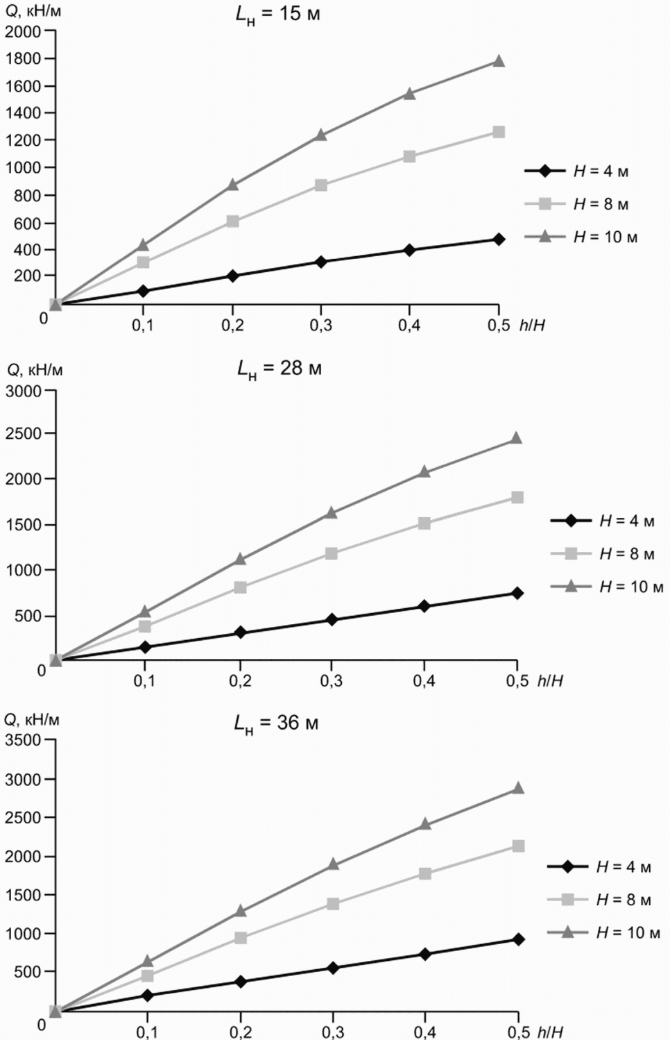 h2.2 = 2 м при нагрузке