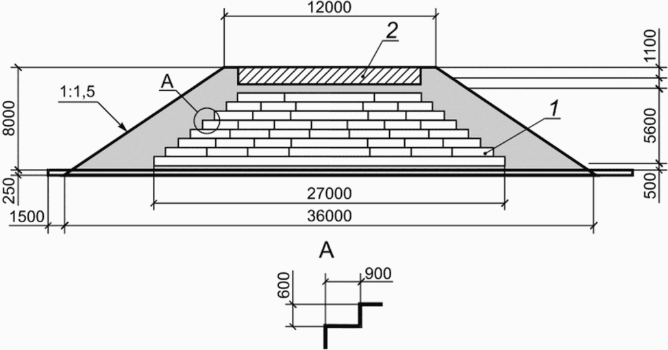Рисунок А.7 - Конструкция легкой насыпи, содержащей слой