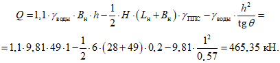 - уровень воды h = 1 м.