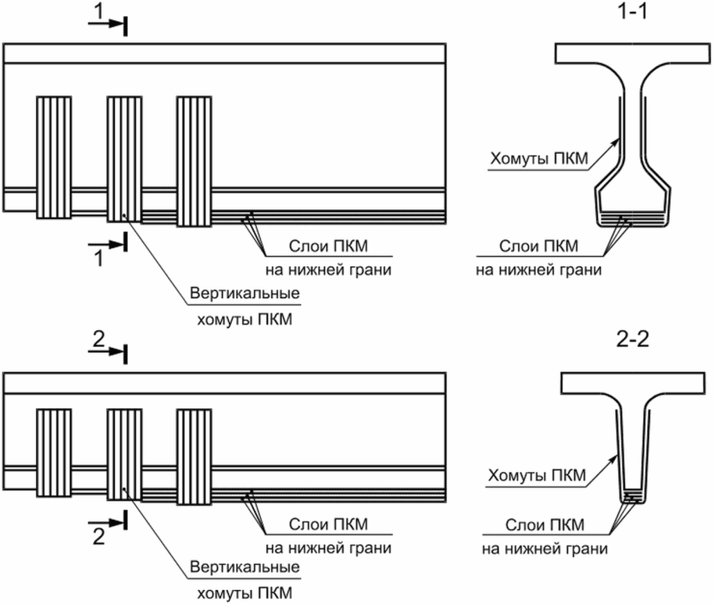 Рисунок А.2 - Схема усиления слоями ПКМ на нижней грани