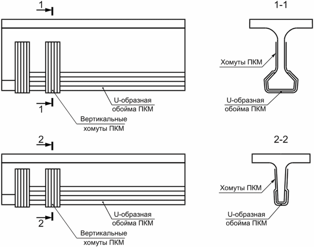 4.9 Для балочно-неразрезных и консольных пролетных строений с недостаточной несущей способностью в зонах действия отрицательных изгибающих моментов (над промежуточными опорами) может оказаться эффективным комбинированное усиление с использованием монолитной накладной плиты