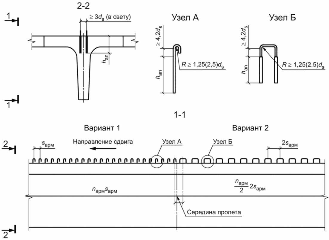 (4.4, д), как правило, применяются на ребристых разрезных пролетных строениях с ненапрягаемой арматурой.