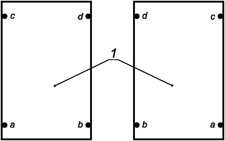 Размещают шаблон на поверхности среза на одном из участков таким образом, чтобы нанесенные риски находились в начале испытуемого участка, а последняя риска совпадала с линией начала участка. После этого перемещают шаблон вдоль испытуемого участка до совпадения первой по ходу движения риски с линией окончания испытуемого участка (см.